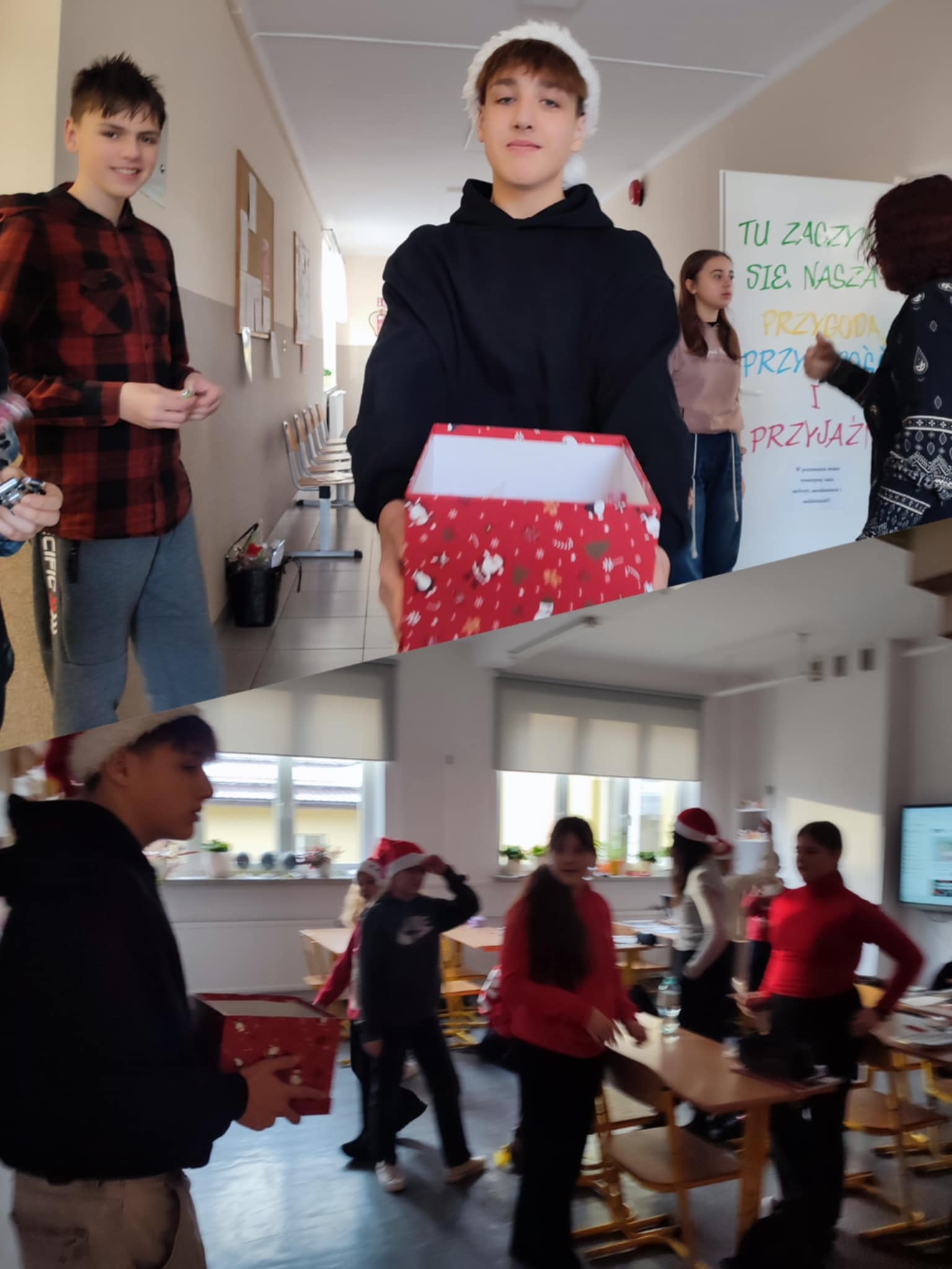 Święty Mikołaj już od wczesnego rana zostawił w klasach drobne prezenty wywołując szczery uśmiech na twarzach uczniów. Dodatkowo podczas przerw przedstawiciele Samorządu Szkolnego częstowali koleżanki i kolegów słodkościami przygotowanymi przez Radę Rodziców. Można zatem powiedzieć, że każdego ucznia odwiedził stu procentowy Mikołaj – gdyż przewodniczący naszej szkoły nosi właśnie imię Mikołaj!