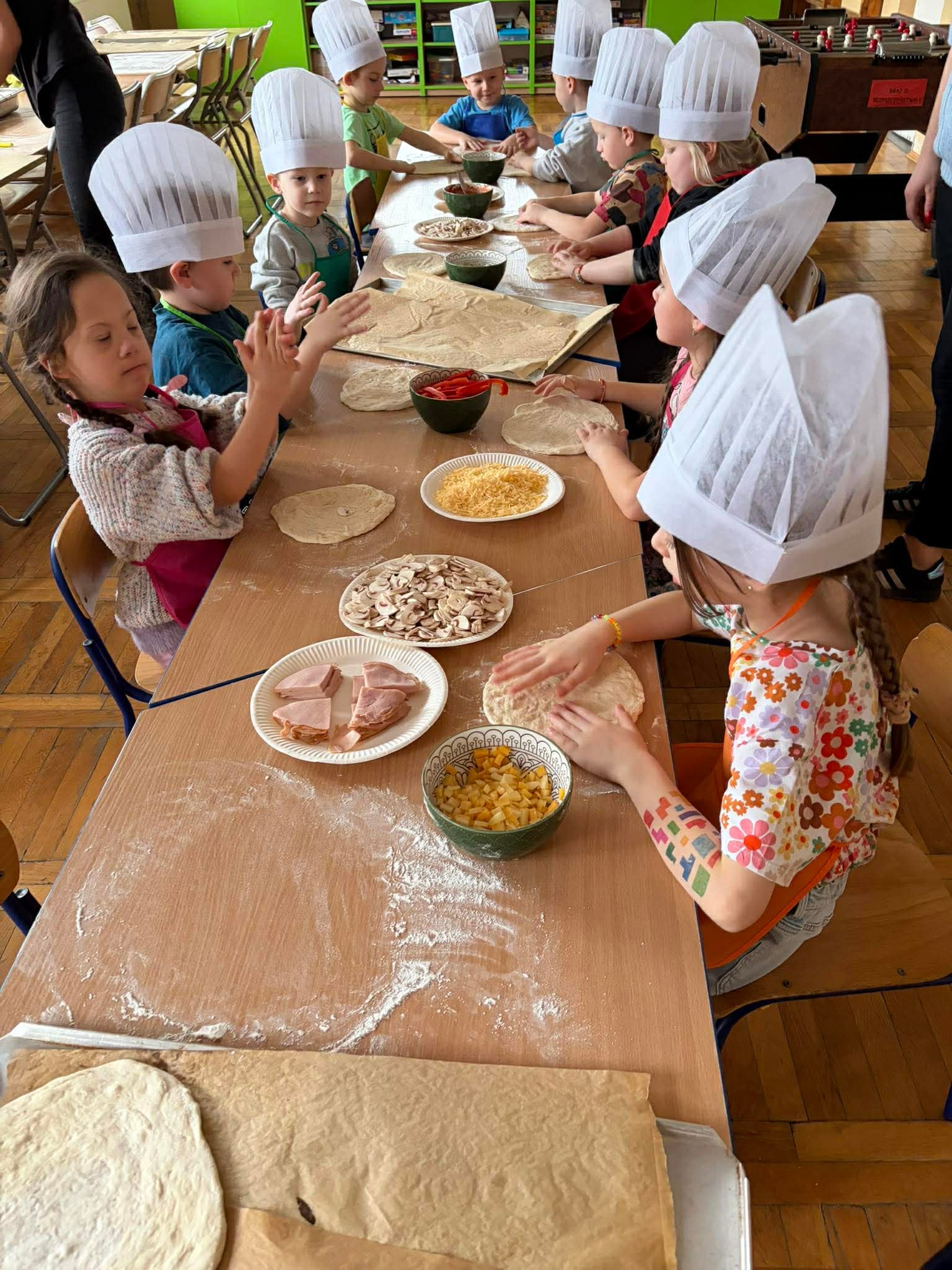 25 lutego 2026 roku w oddziałach przedszkolnych odbyły się wyjątkowe warsztaty robienia pizzy. Zajęcia zostały zorganizowane przez Panią Joannę Pokrzyk oraz doświadczoną pizzermenkę.