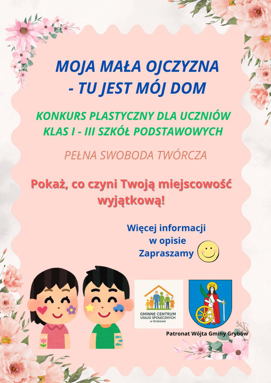 Celem konkursu było ukazanie piękna najbliższej okolicy – jej historii, zabytków, przyrody, codziennego życia mieszkańców oraz lokalnych tradycji. Uczestnicy mieli okazję przedstawić, dlaczego miejsce, w którym żyją, jest dla nich wyjątkowe. Konkurs skierowany był do uczniów klas I–III szkół podstawowych z terenu Gminy Grybów.