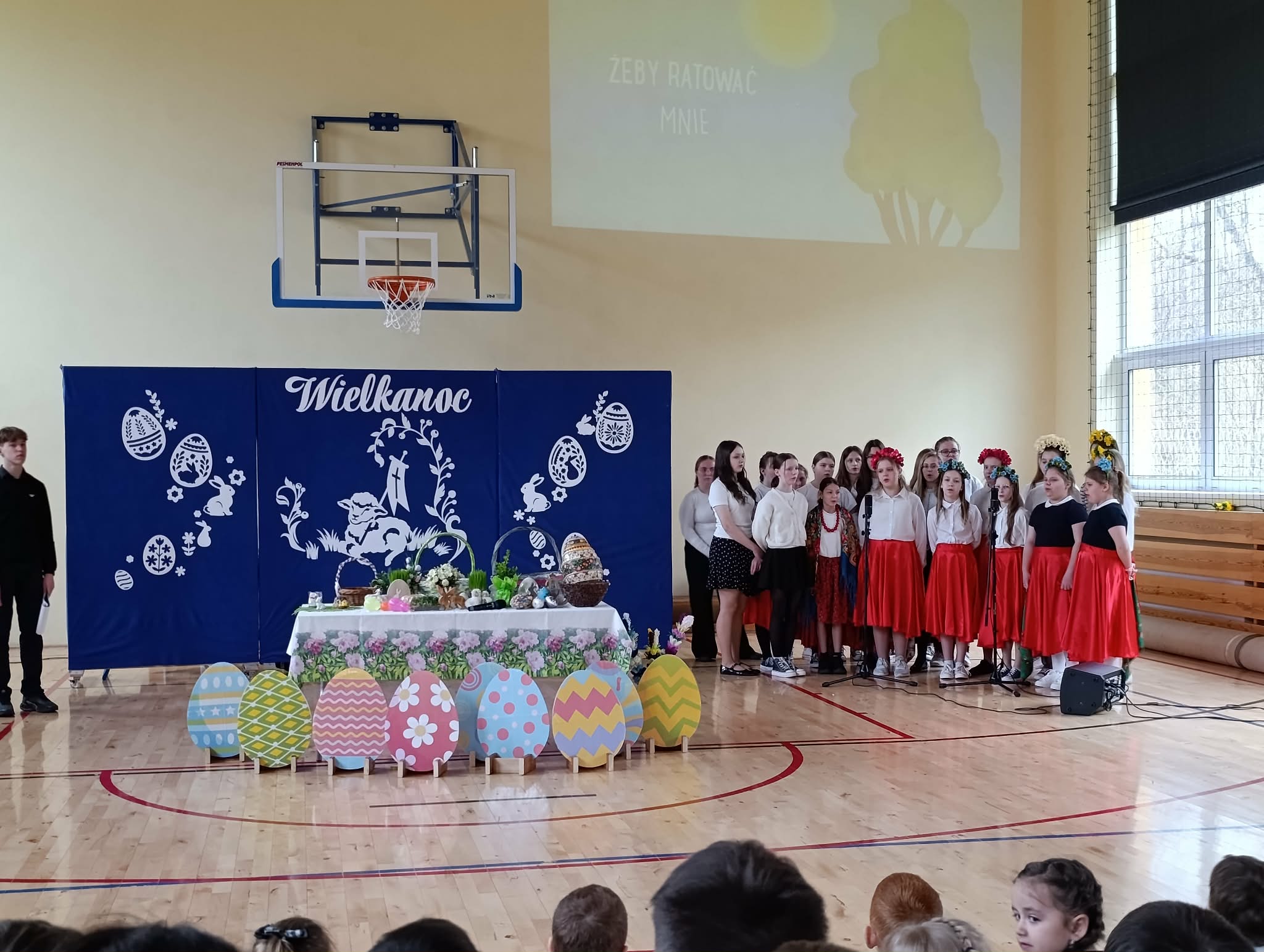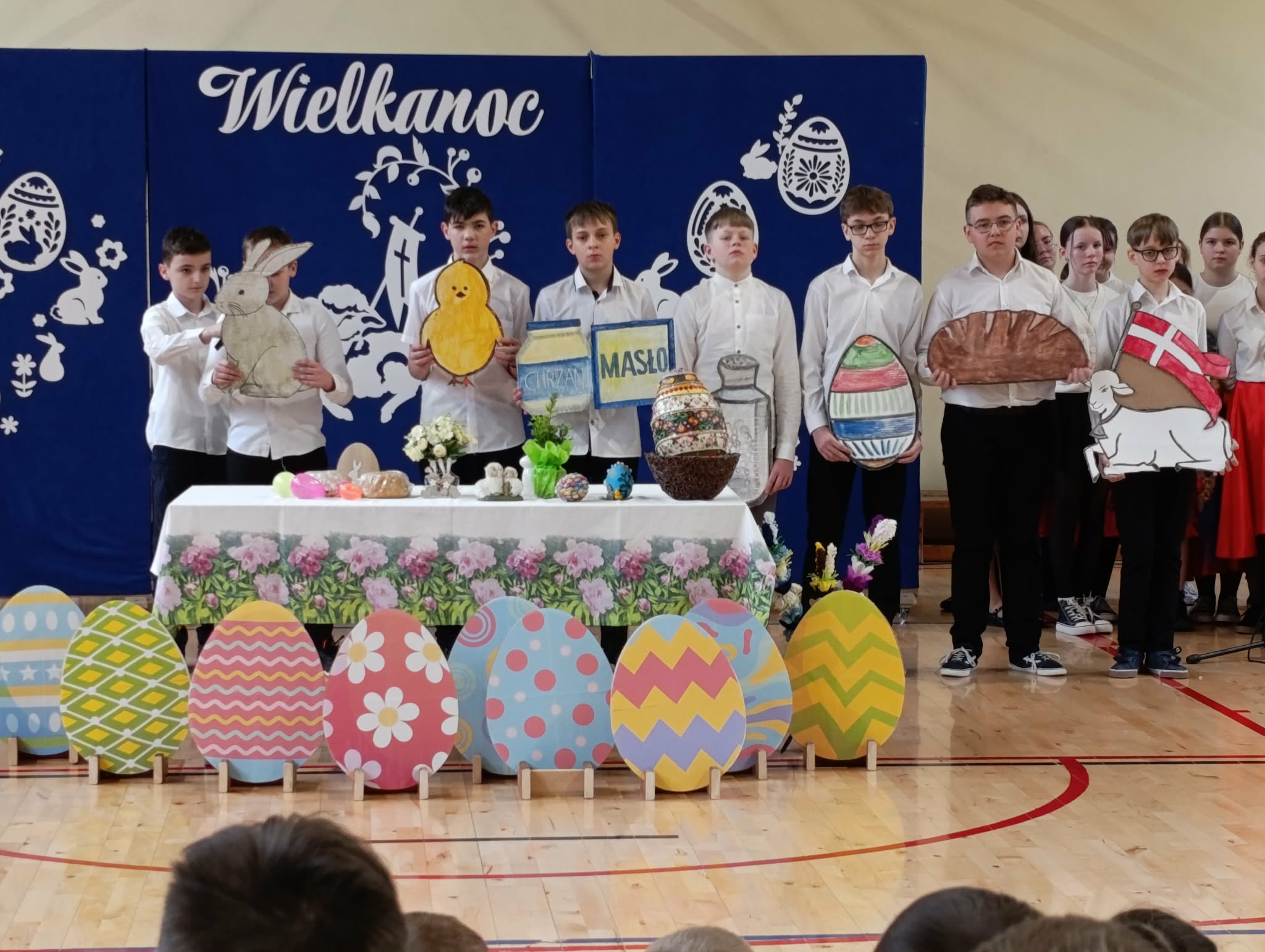 W dniu dzisiejszym w naszej szkole odbyła się uroczysta akademia z okazji Świąt Wielkanocnych. Uczniowie z dużym zaangażowaniem przygotowali program artystyczny, podczas którego przypomnieli najważniejsze wydarzenia i momenty związane z Wielkanocą. W swoich wystąpieniach przybliżyli znaczenie tych świąt, nawiązując do ich głębokiego wymiaru religijnego, a także do pięknych polskich tradycji i symboli.
